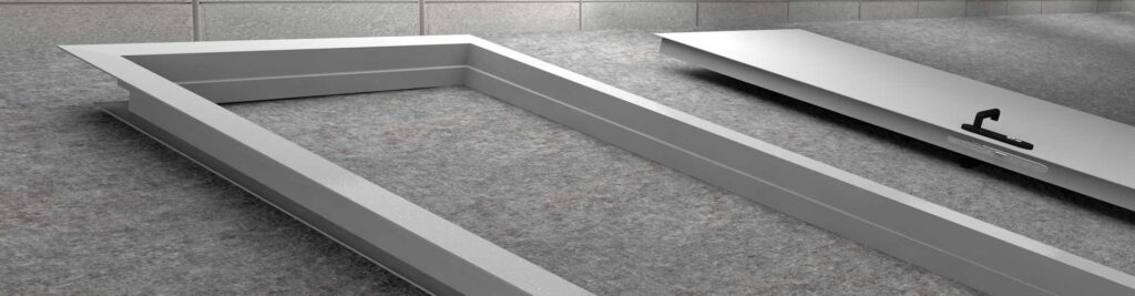 Для устранения неудобства при передвижении через дверь тележек, электрокаров и других механизмов, конструкцией предусмотрено отсутствие стационарного порога и в нижней части полотна применяется специальный противопожарный выпадающий порог.